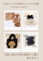 | favori | 3/14(土) No.33 | かわいいわんちゃん服をハンドメイドで作っているfavoriです。 トイプードルやポメラニアン、チワワ、柴ちゃんからダックスちゃんなど、小型犬から中型犬まで様々な犬種のお洋服を取り揃えています。 またお好きな生地からワンちゃんそれぞれの体型にあわせて作る受注生産も承っています。 可愛いくて、お手頃価格を目指して日々制作しております。 | https://www.instagram.com/ favori_shop2017 ![]() |